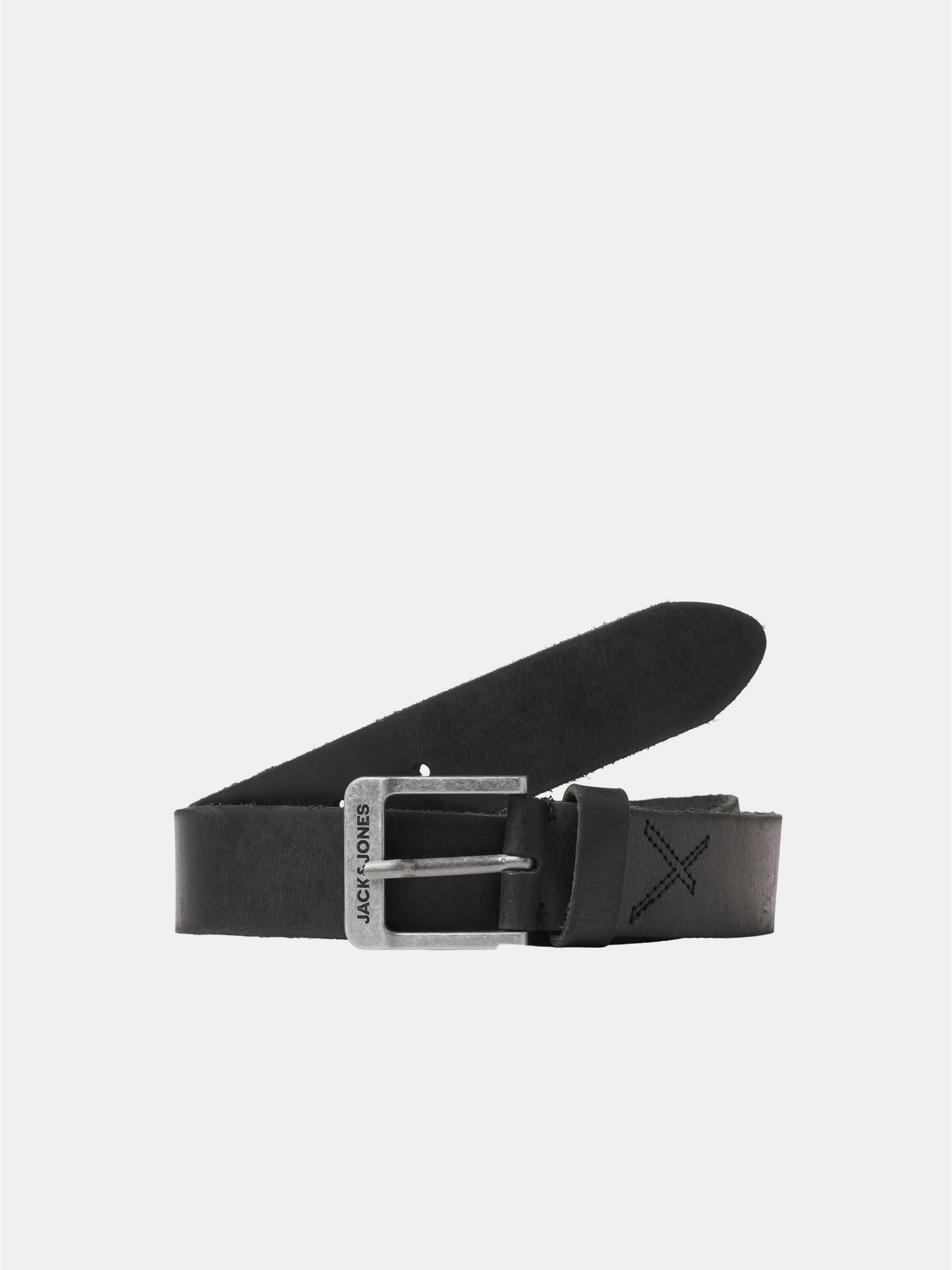 Μαύρη ανδρική δερμάτινη ζώνη Jack & Jones Rock
