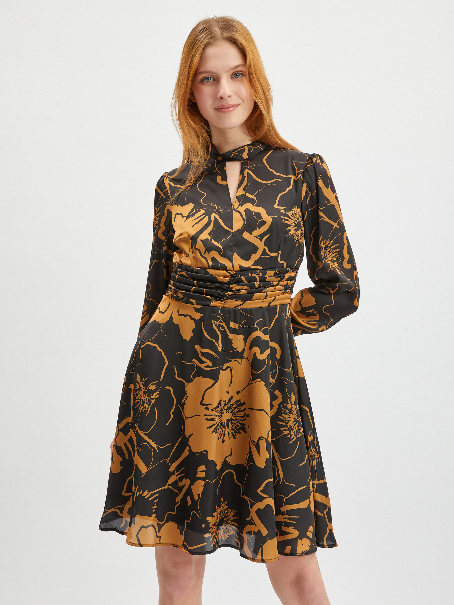 ORSAY καφέ και μαύρο γυναικείο σατέν φόρεμα με λουλούδια