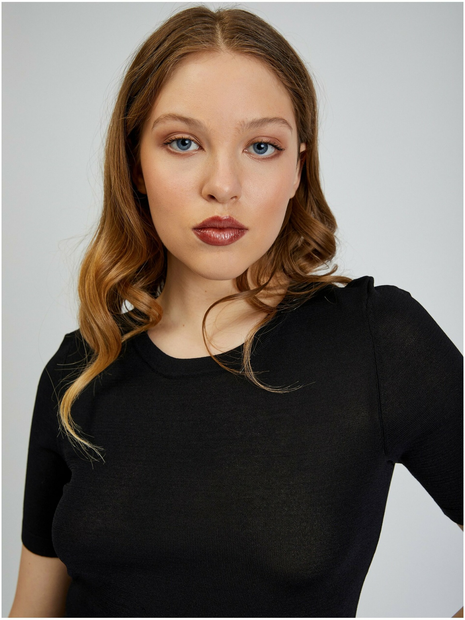 Μαύρο γυναικείο πλεκτό t-shirt ORSAY