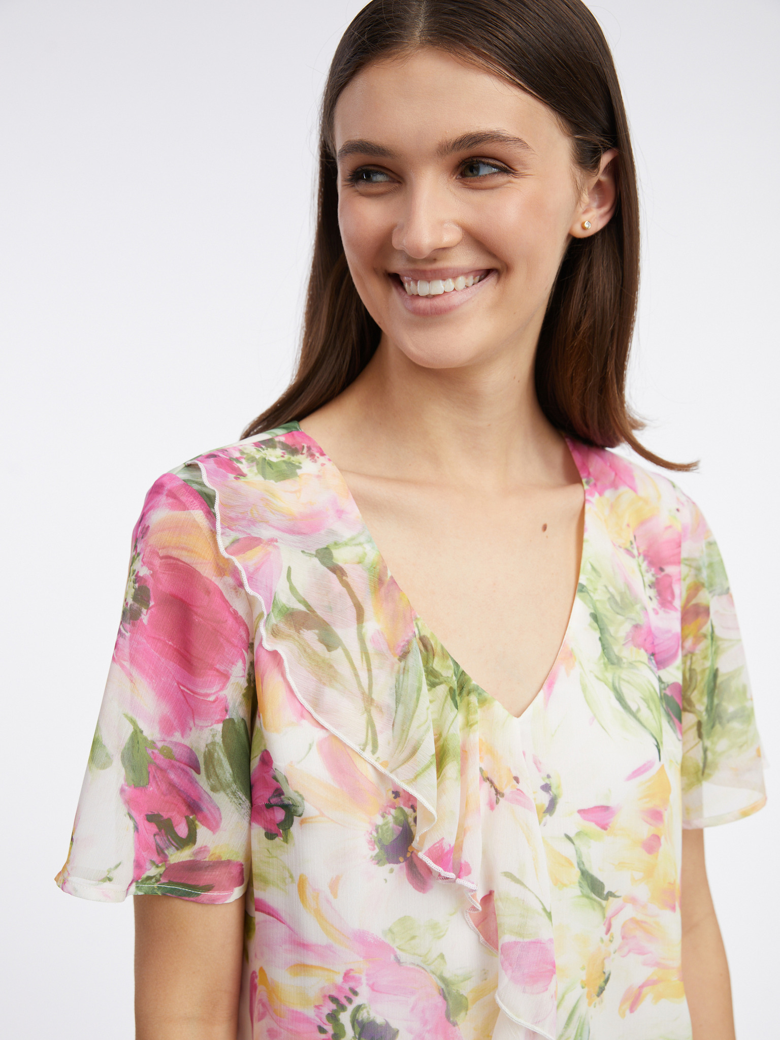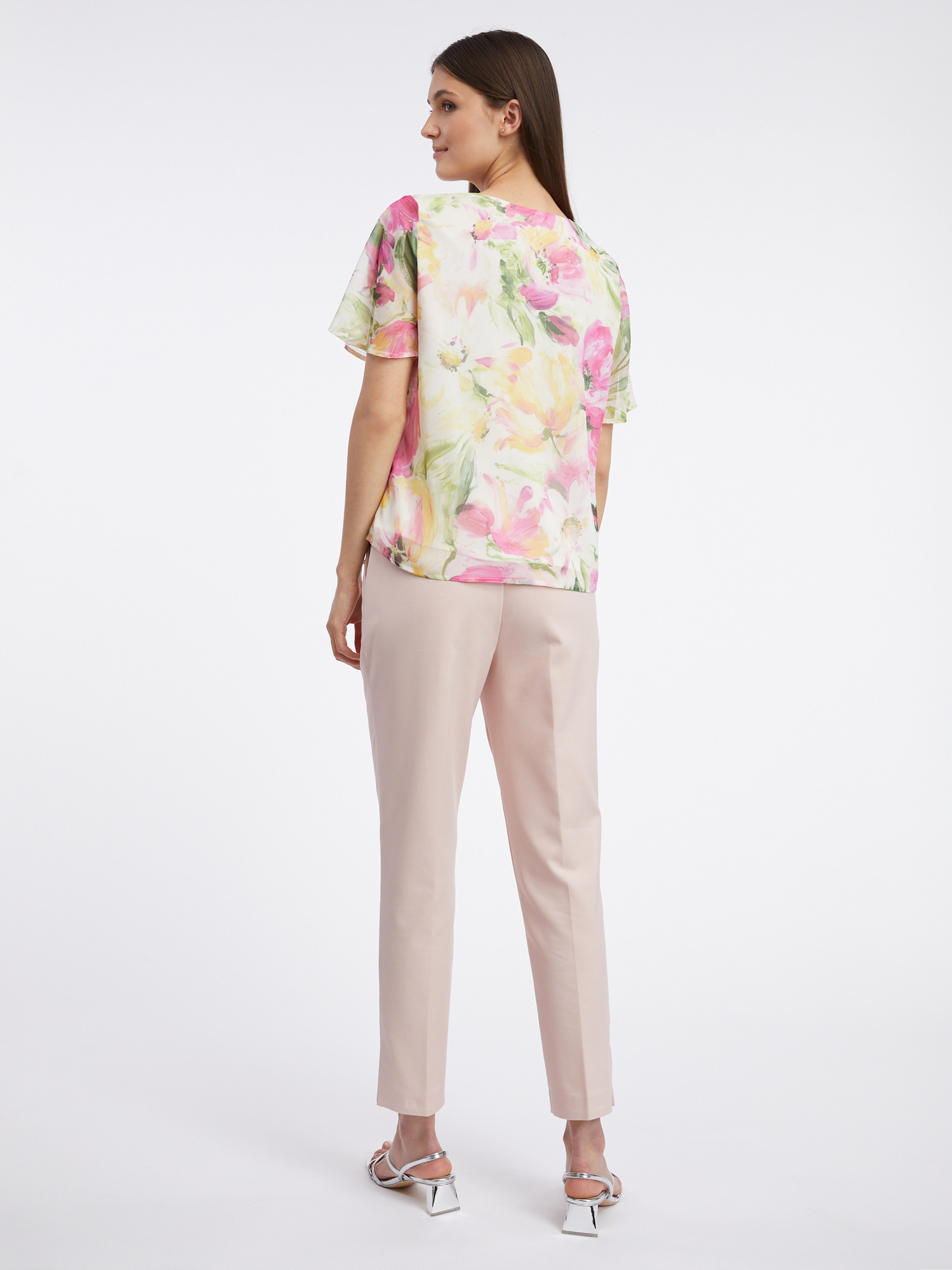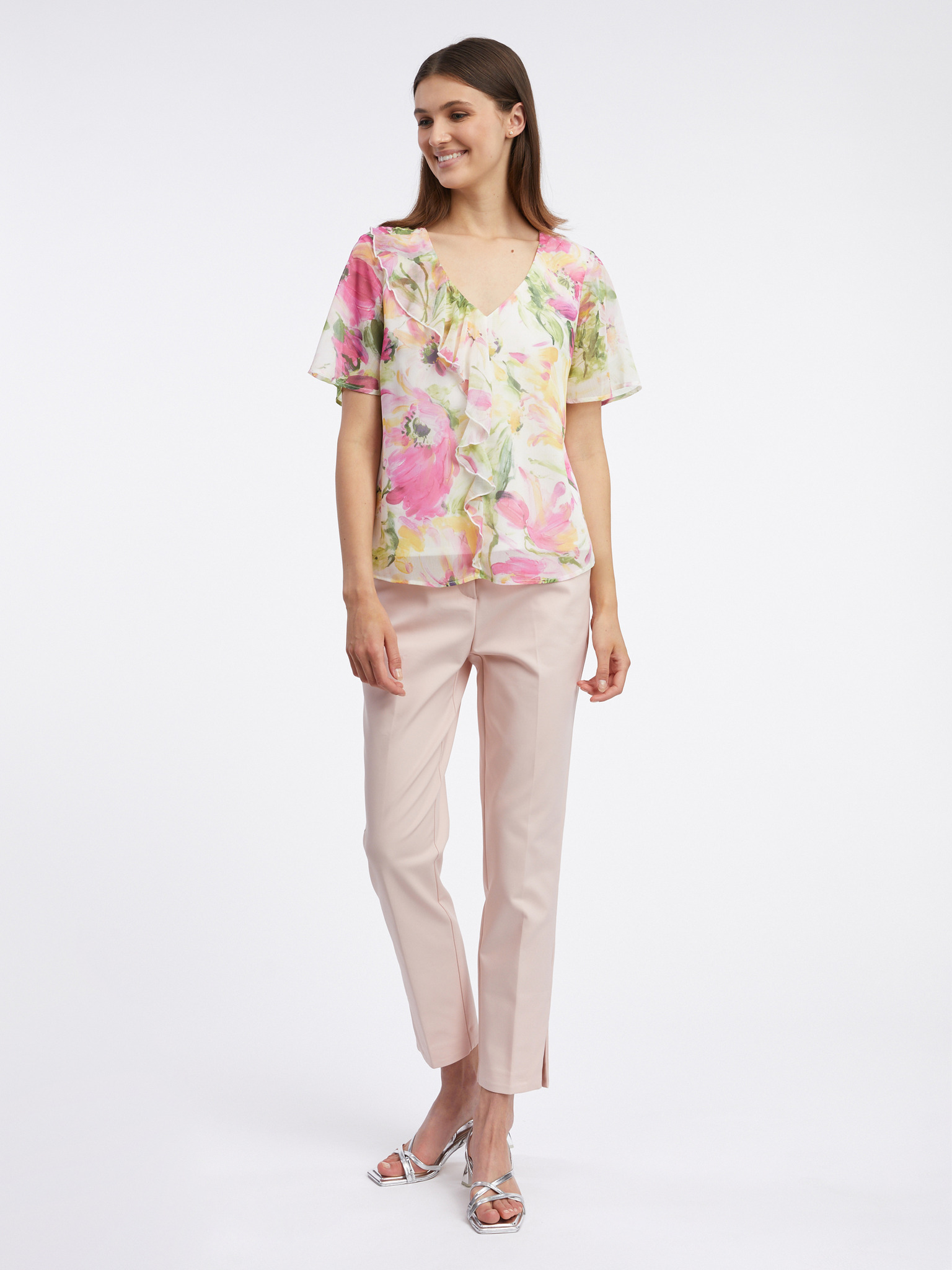 Ροζ και λευκή γυναικεία φλοράλ μπλούζα ORSAY