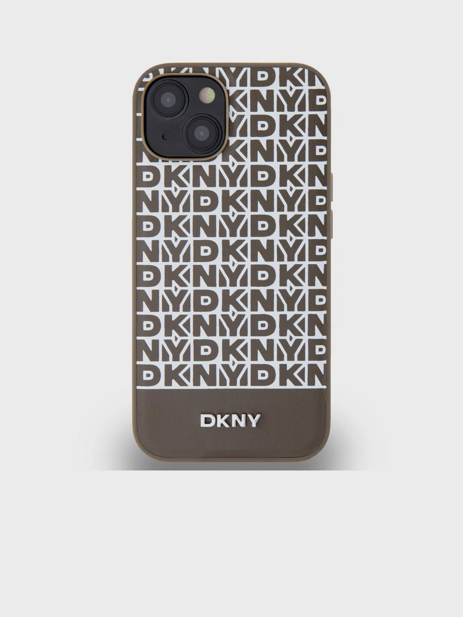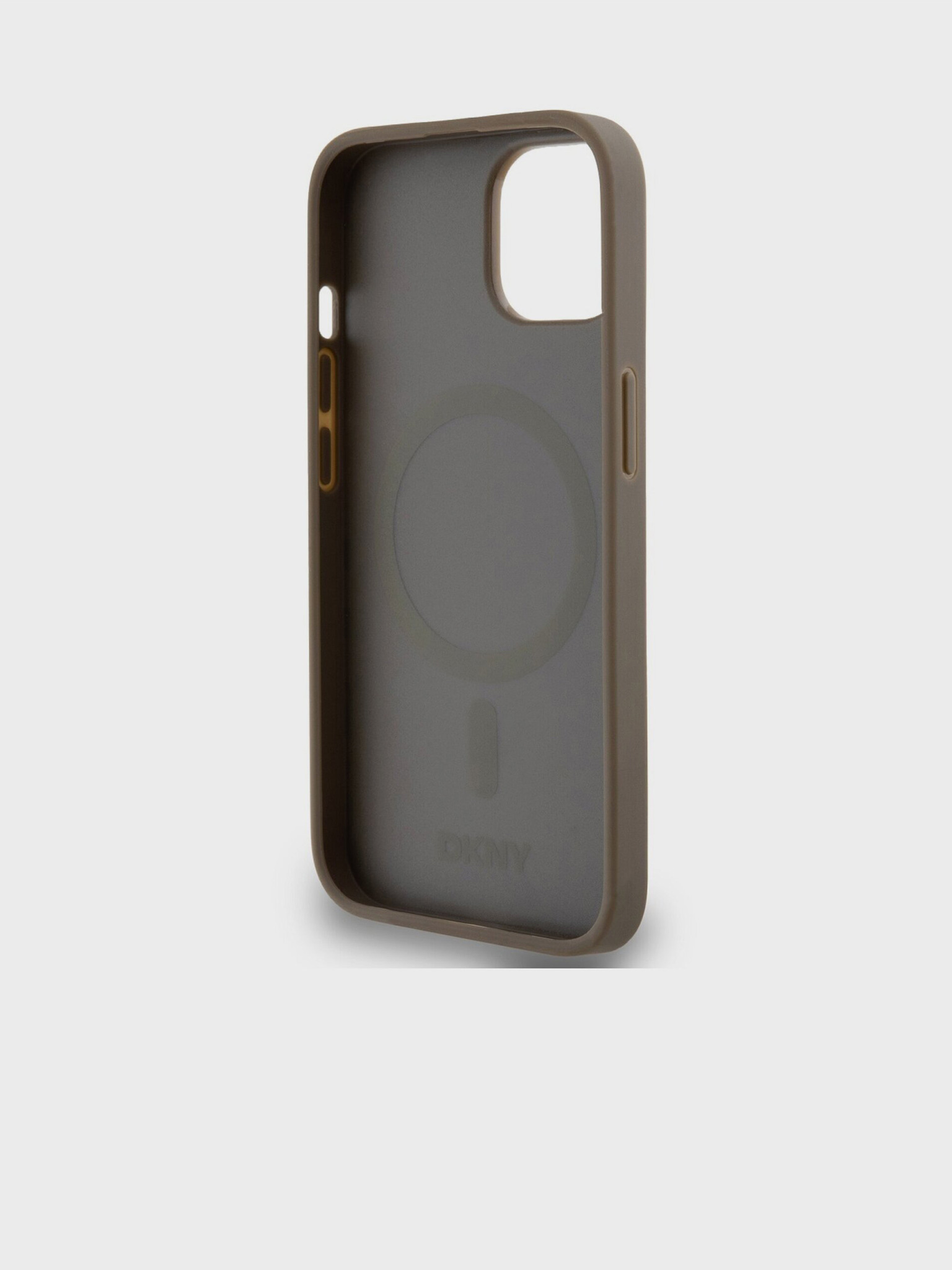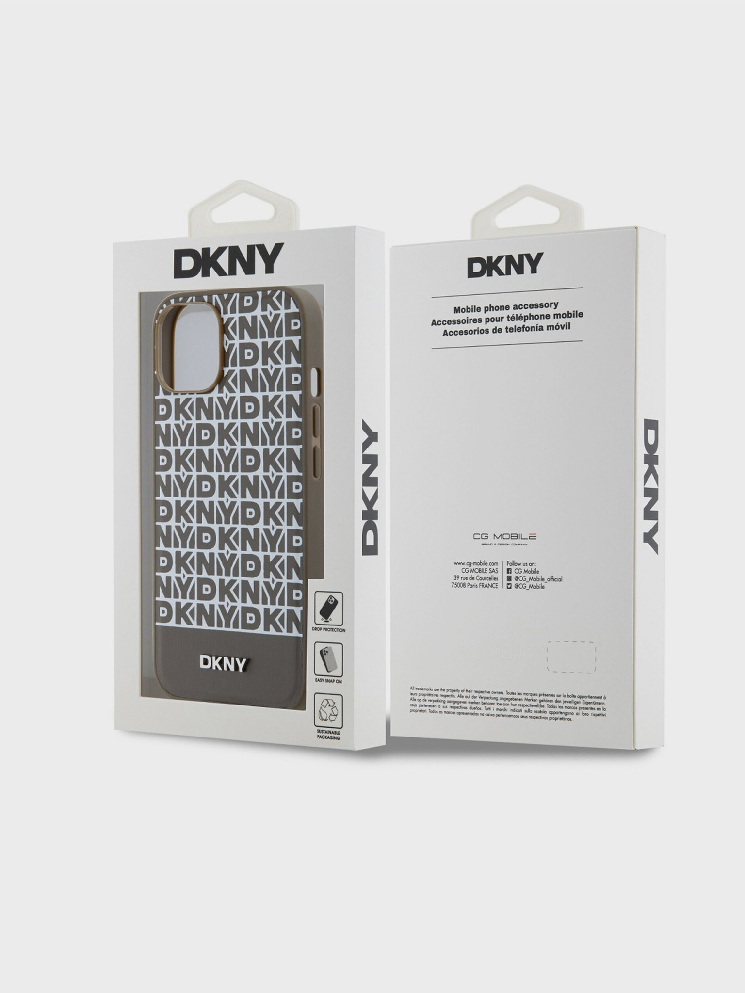PU Leather Repeat Pattern Bottom Stripe MagSafe Back Cover για iPhone 15 Brown DKNY