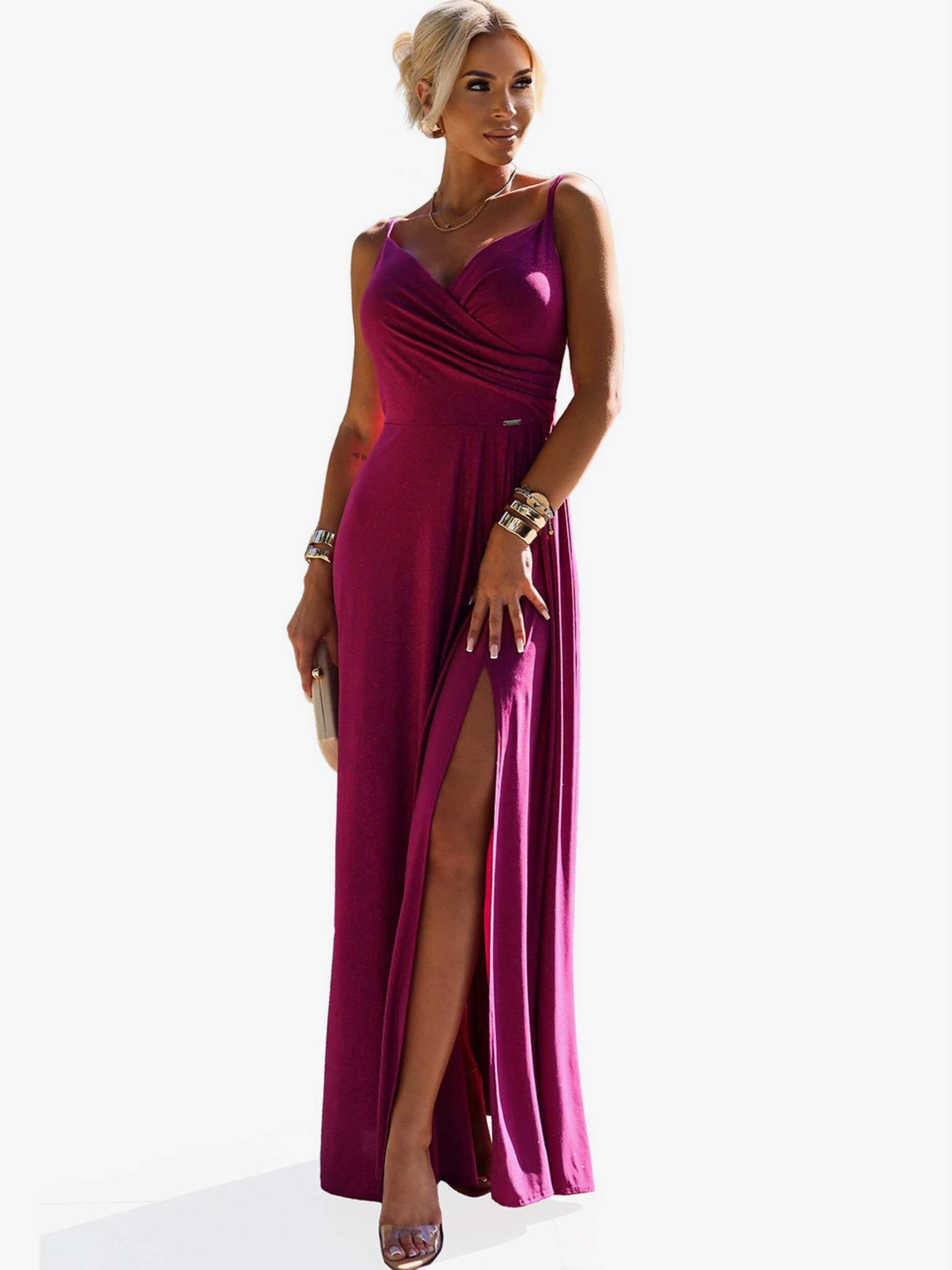 Κομψό μακρύ μάξι φόρεμα με τιράντες - φούξια με γκλίτερ Numoco CHIARA
