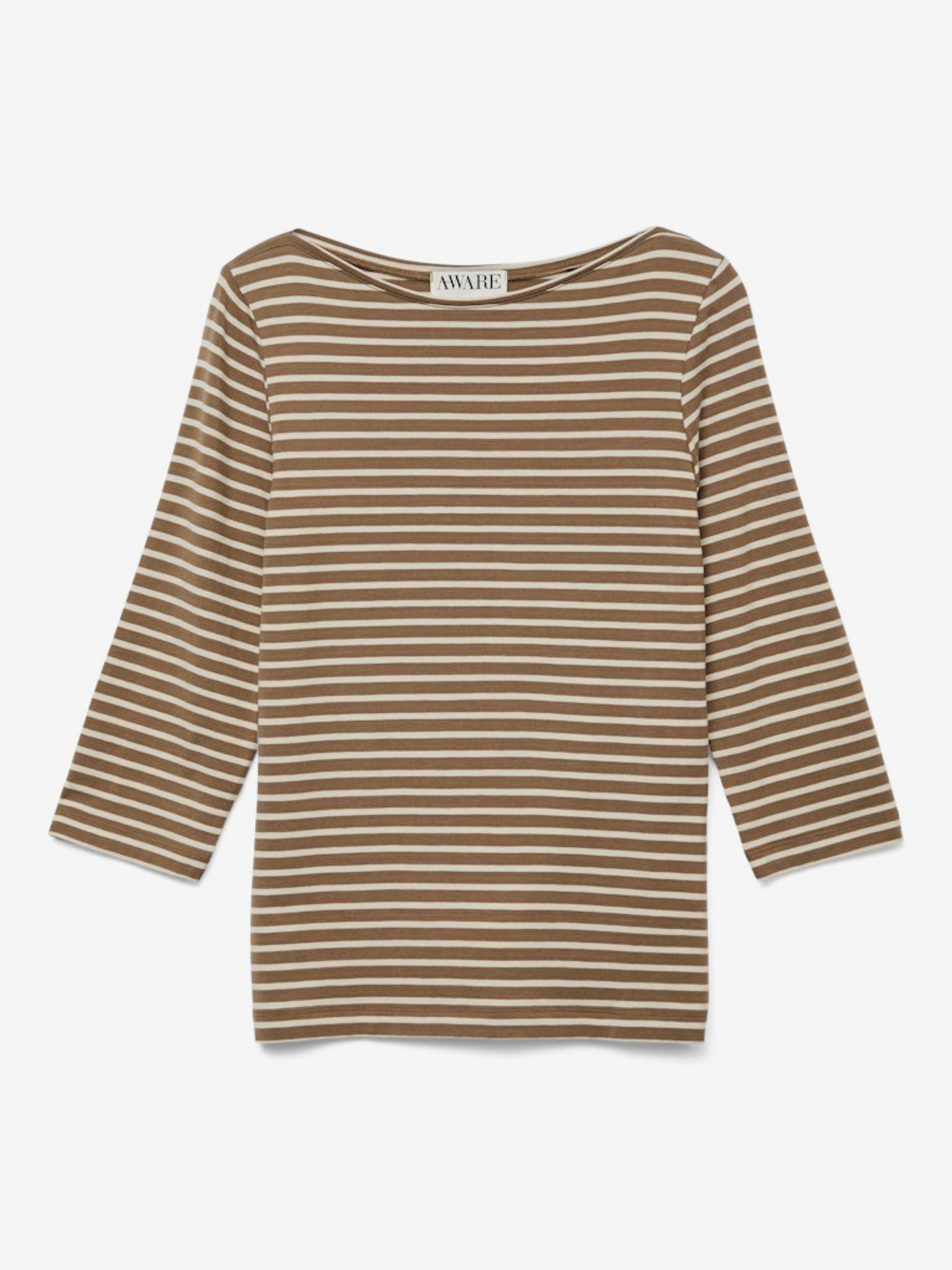 Καφέ γυναικείο ριγέ μπλουζάκι AWARE by VERO MODA Fiona
