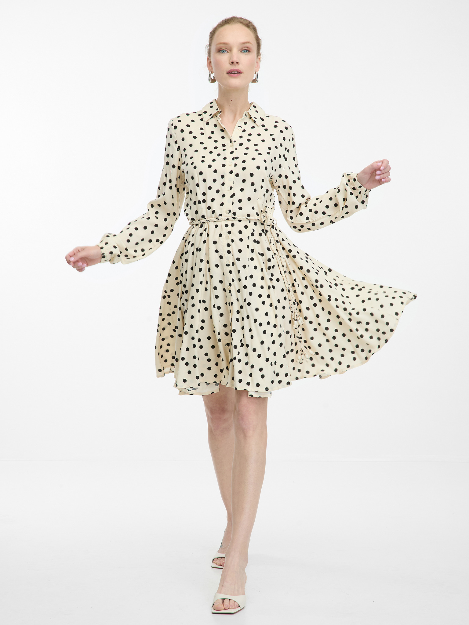 Κρεμώδες γυναικείο πουκαμισοφόρεμα μέχρι το γόνατο ORSAY